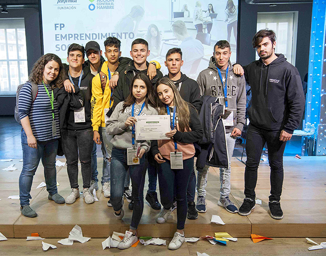 Durante los días 4, 5 y 6 de mayo, los alumnos que pertenecen al segundo curso de Formación Profesional Básica de las ramas de Servicios Comerciales y Fabricación y Montaje del IES Condestable Álvaro de Luna, acudieron al encuentro nacional de Formación Profesional en Emprendimiento Social organizado por Fundación Telefónica y Acción Contra el Hambre.