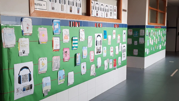 Por ejemplo, la celebración del Día Mundial de las Bibliotecas el 24 de Octubre. Con motivo de esta celebración, los alumnos prepararon recomendaciones de sus libros favoritos realizando una sinopsis del libro y contándonos lo que más les había gustado y lo que había aprendido con su lectura. Estas recomendaciones se hicieron en varios formatos, los primeros cursos de la ESO dibujaron unas portadas muy creativas del libro donde añadieron un código QR que llevaba a la descripción y recomendación. Por otro lado, los de 4º de la ESO y ciclos de grado superior, grabaron sus recomendaciones en audio. Aún podéis acceder a todas estas recomendaciones visitando el gran mural que da paso a la Biblioteca del centro.