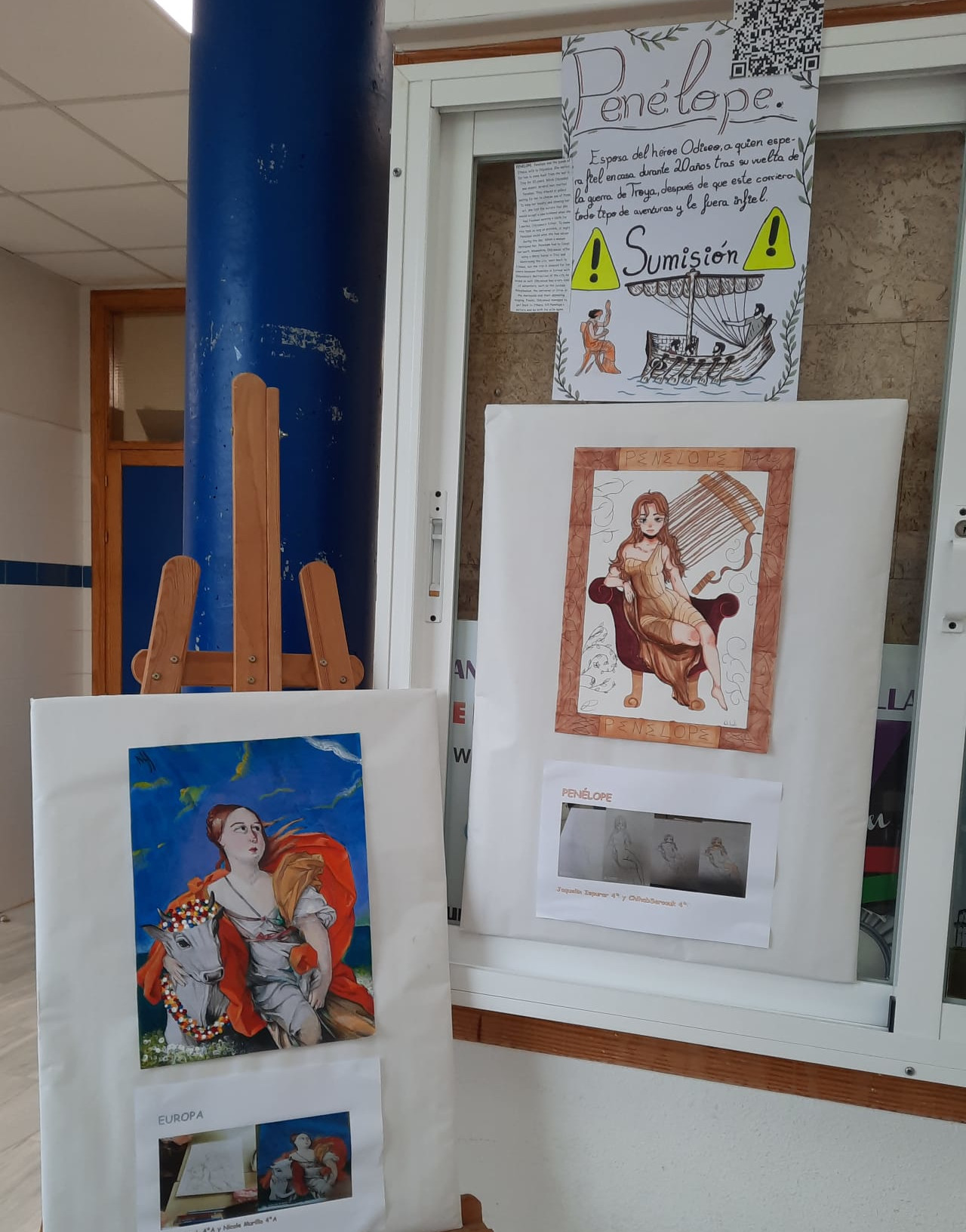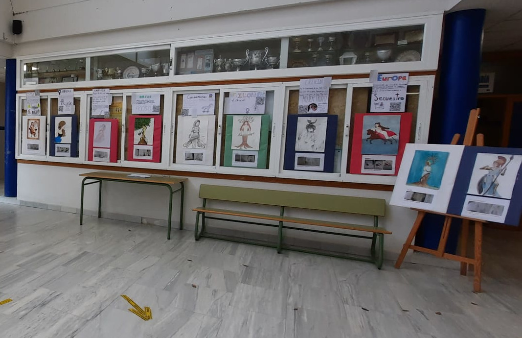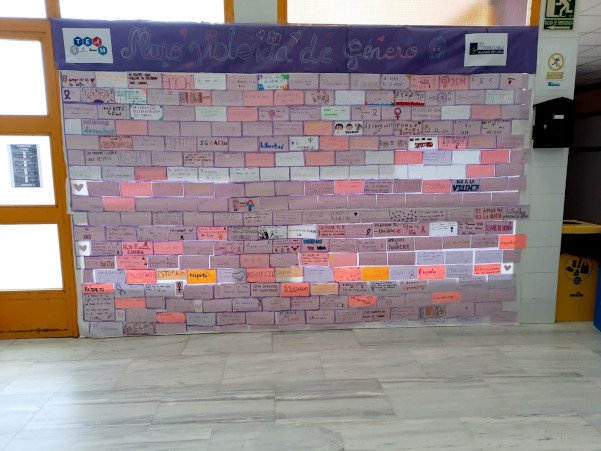 Durante el mes de noviembre, el tema tratado fue la lucha contra la violencia de género, con la celebración del Día Mundial para su eliminación el 25 de noviembre. Los alumnos de Clásicas y de Educación Plástica de 4º de ESO han analizado los distintos delitos contra la mujer que estaban presentes en la mitología griega y los han plasmado en unos espectaculares murales que podéis disfrutar en el hall. Por otro lado, los alumnos de primeros cursos de la ESO, profesores y familias, se han afanado en la construcción de un Muro Contra la Violencia de Género con frases en contra de esta y de apoyo a las víctimas.