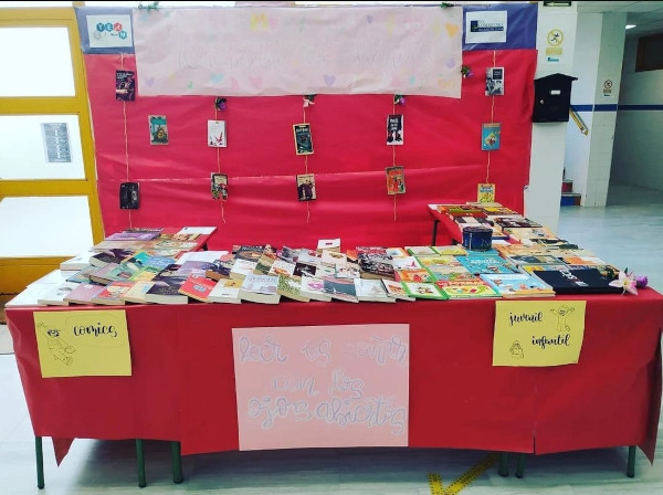 Desde la Biblioteca, la profesora Sonia de la iglesia ha organizado un mercadillo de libros de segunda mano a 1€ y con el dinero recogido podrán comprar libros más actuales.