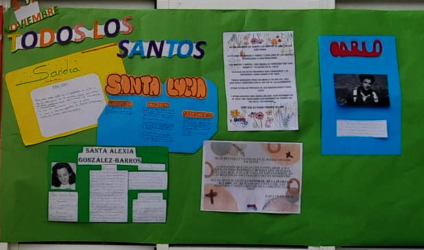 Para despedir octubre celebramos Halloween el 31 de octubre con sus adornos terroríficos y los concursos de calabazas y relatos cortos, este último a cargo del AMPA. Además de estudiar el origen de esta festividad, durante este curso hemos querido ahondar en el tema del tratamiento a los muertos en otras culturas y religiones. De este modo, los alumnos de Clásicas realizaron una exposición con sus trabajos llamada Mundus Patet y así mismo, los alumnos de Religión expusieron sus trabajos sobre las celebraciones del Día de los Santos el 1 de noviembre y el Día de los Difuntos el 2 de noviembre.